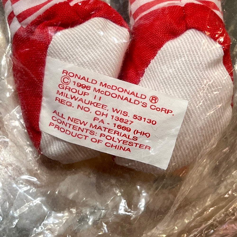 McDonald's マクドナルド 1996年製 ビーンバッグ プラッシュドール ロナルドマクドナルド ハンバーグラー グリマス 3体セット